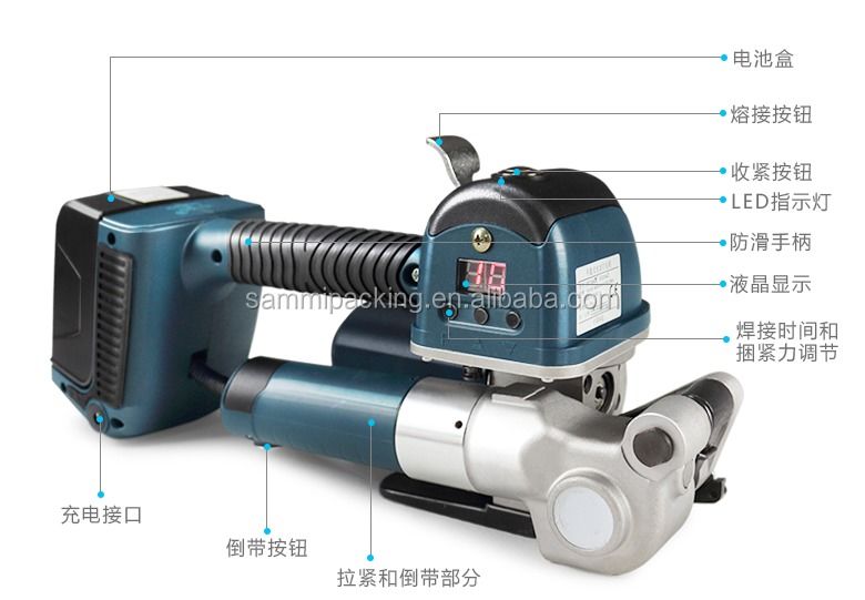 ابزار تسمه کشی برقی برای تسمه کشی PET یا PP استفاده می شود. دستگاه تسمه کشی پلاستیکی قابل حمل با باتری دستی می تواند تسمه های جدید و قدیمی را مستقیماً ترکیب کرده و در زمان بستن و بار کاری صرفه جویی کند. آنها برای بسته بندی فولاد، چوب، آجر، الیاف و غیره مناسب هستند. به طور گسترده در صنعت کاغذ، صنعت آلومینیوم، صنعت فولاد، چوب، بسته بندی چوبی، الیاف شیمیایی، پنبه، تنباکو، مواد شیمیایی، صنعت فلز استفاده می شود.