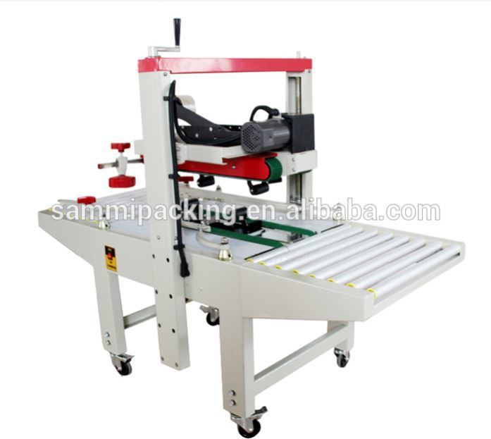 2. ارتفاع و عرض چسبزنی را با توجه به اندازه کارتن به صورت دستی تنظیم کنید، سپس کارتن را روی میز کار قرار دهید و کارتن از طریق آن منتقل شده و همزمان با نوار چسب به طور خودکار پلمپ میشود.
