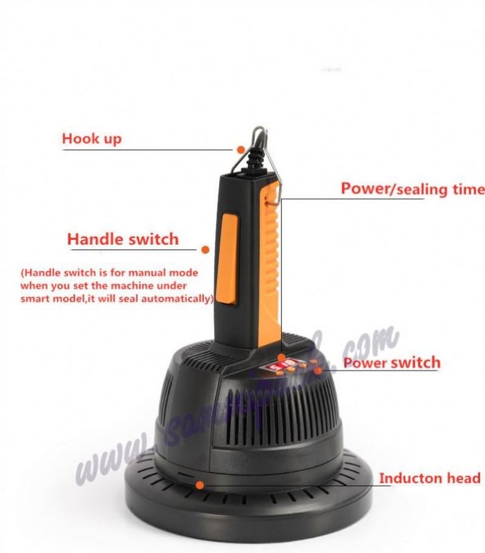 دستگاه مهر و موم الکترومغناطیسی دستگیر یک دستگاه مهر و موم بدون تماس است، گرما تولید شده توسط چرخش الکترومغناطیسی، که از ورق آلومینیوم ذوب شده است
