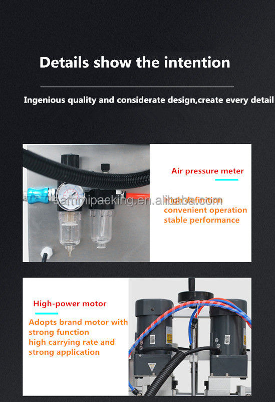 مناسب برای پیچ زدن قفل شکل های مختلف بطری در صنایع مواد غذایی، داروسازی، مواد شیمیایی روزانه، آفت کش و لوازم آرایشی و غیرهچهار موتور سرعت تنظیم شده آن به ترتیب برای تامین کاپ استفاده می شود، فشرده سازی بطری ها، تحویل و پیچ زدن قفل. این کار با درجه بالایی از اتوماسیون، ثبات برجسته، تنظیم آسان، نیازی به قطعات جایگزین برای جایگزینی انواع بطری ها یا قفل ها مشخص می شود.که تنها با تنظیم.